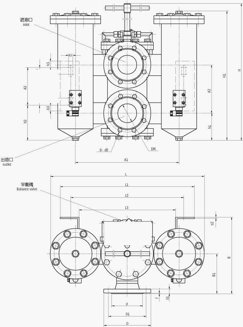 在工作過程中,單筒過濾器濾芯堵塞到一定程度需清洗或更換濾芯時(shí),要停止主機(jī)工作來更換濾芯,這樣不僅浪費(fèi)時(shí)間更不能滿足主機(jī)連續(xù)工作需要,雙筒過濾器有效地解決了單筒過濾器這方面的缺陷,在不停機(jī)的情況下可清洗或更換濾芯來保證主機(jī)正常連續(xù)工作。