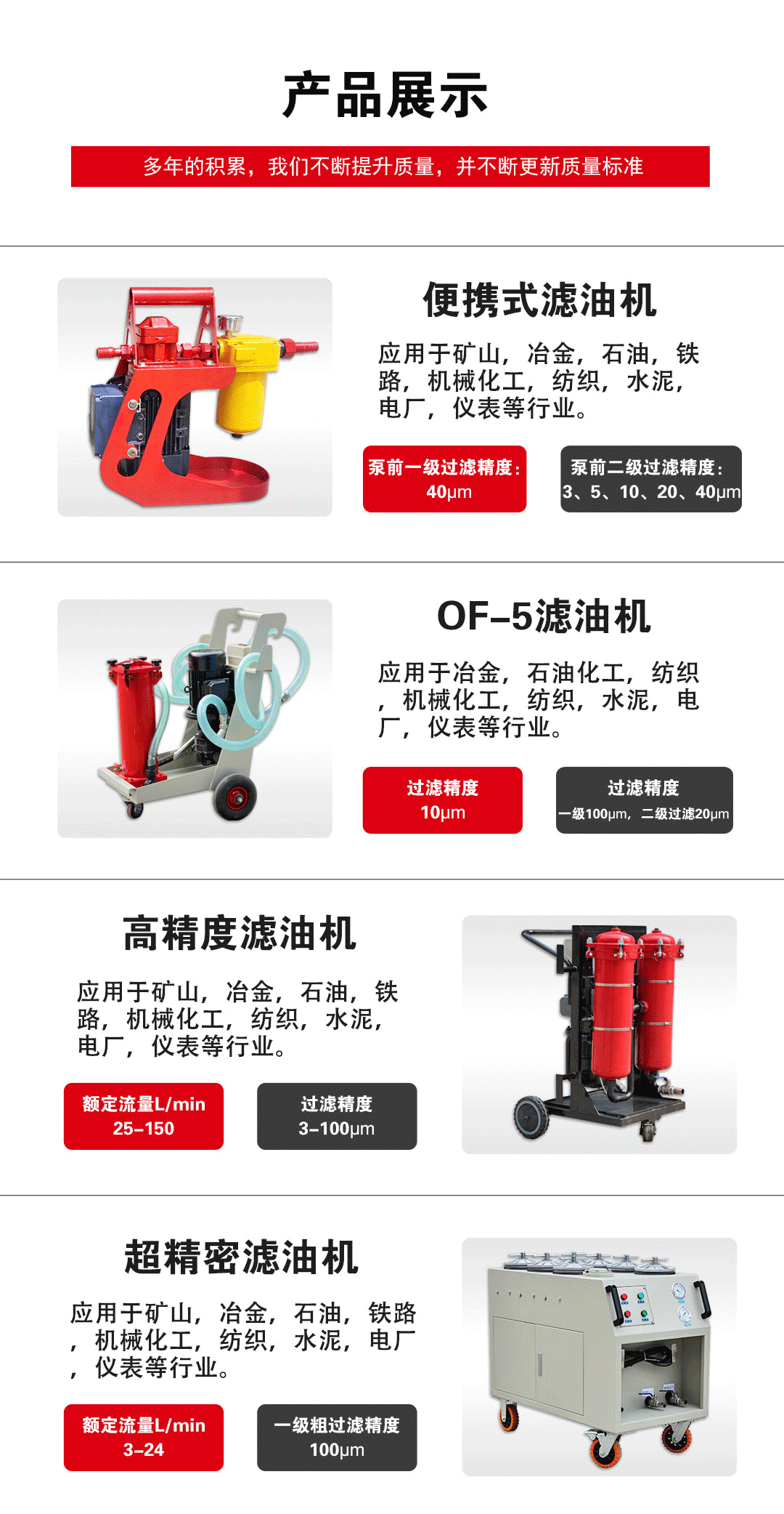 油液在設(shè)備長(zhǎng)期運(yùn)轉(zhuǎn)后,設(shè)備中的液壓油,潤(rùn)滑油,機(jī)油等不可避免地被混入大量的鐵屑,水乳化物,元件損顆粒等雜質(zhì)以及由于高溫氧化液壓油自身生成氧化變質(zhì)產(chǎn)生的膠質(zhì)瀝青質(zhì)的污染,油液的顏色逐漸渾濁,油液粘度下降,性能降低,會(huì)嚴(yán)重影響系統(tǒng)的工作性能,降低元件的使用壽命,直接導(dǎo)致對(duì)設(shè)備的損壞。
