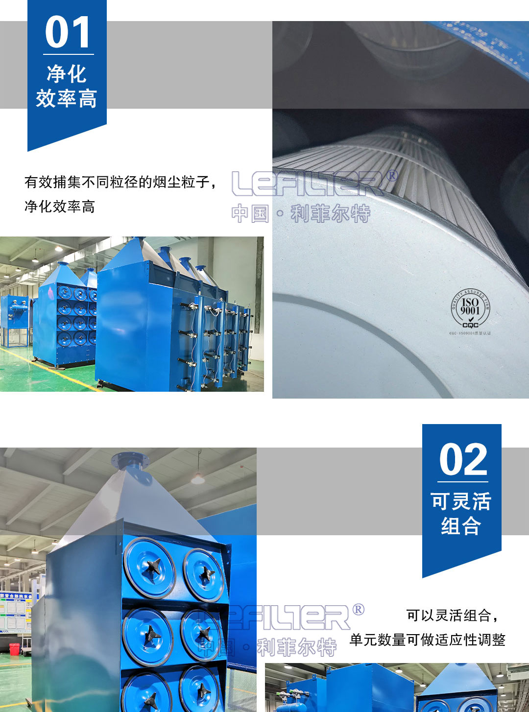 2、凈化效率高,對于亞微米以上的粉塵有99。9%以上的凈化效率,設備運行阻力低,有效節(jié)約除塵系統(tǒng)的能耗。