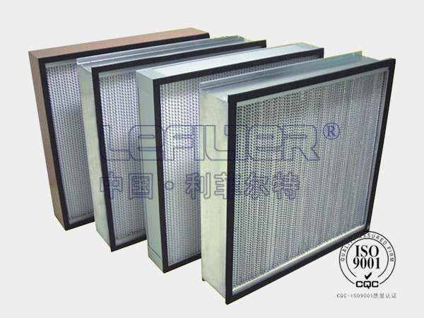 高效耐高溫過濾器使用隔板式設(shè)計,波紋形隔板可以準確地保持褶層間距,在較小阻力下,較大限度地利用濾料。過濾器濾材兩面180褶翻折形成鍥形褶層,濾料折彎時有兩道壓痕,使其在隔板的尾端開成鍥形盒式褶層,鍥形盒式褶層可以防止濾料破損;