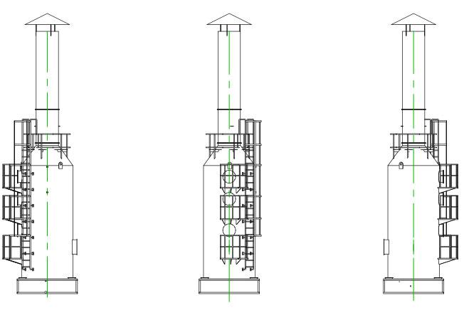 本系統(tǒng)設(shè)計采取氣相組分由下至上均態(tài)分布,液相組分分層同時噴淋。使得待處理的臭氣在處理倉的每一層中都能與噴淋液和菌種完全均勻混合,從而使附著于每層處理倉中填料上的微生物都可以充分進(jìn)行降解消化,以達(dá)到脫臭的目的。
