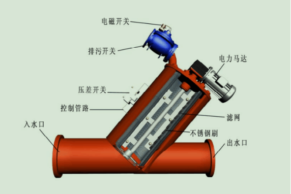 2、電機(jī)帶動(dòng)過(guò)濾器濾網(wǎng)內(nèi)的清洗刷,被濾網(wǎng)所攔截下來(lái)的雜質(zhì)從排污閥排出。清洗時(shí)系統(tǒng)不斷流,過(guò)濾器的整個(gè)運(yùn)行過(guò)程由隨機(jī)配備的一個(gè) 智能控制箱來(lái)控制,控制方式可選壓差、時(shí)間、手動(dòng)