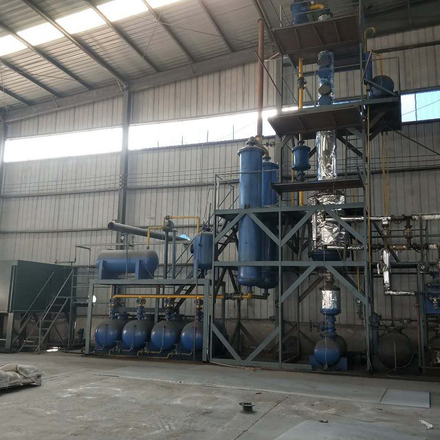 原油蒸餾設(shè)備簡介: 廢機(jī)油、潤滑油、毛油等通過催化裂解和高溫蒸餾的技術(shù)可以轉(zhuǎn)化為更高價值的柴油。它是基于沸騰液體的基礎(chǔ)上,根據(jù)不同混合物的揮發(fā)程度將不同的成分分離出來。經(jīng)過高溫蒸餾過后產(chǎn)出的油品會有比較深的顏色和難聞的氣味,因此我們建議將蒸