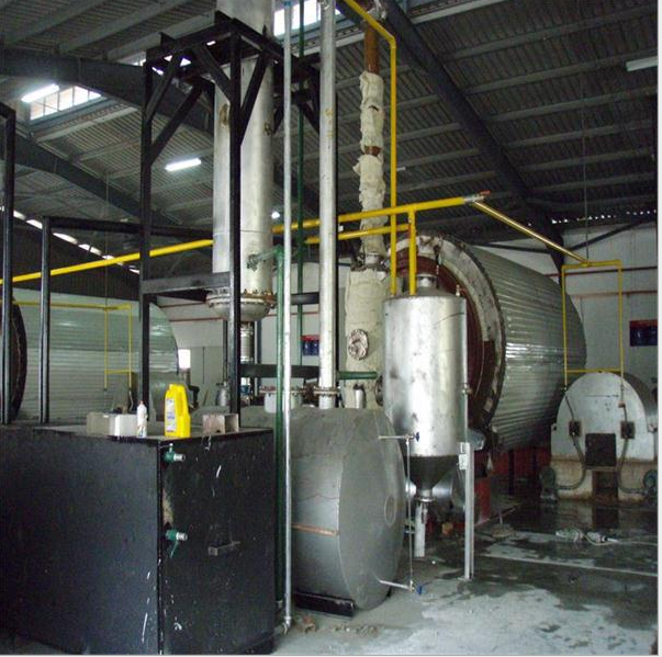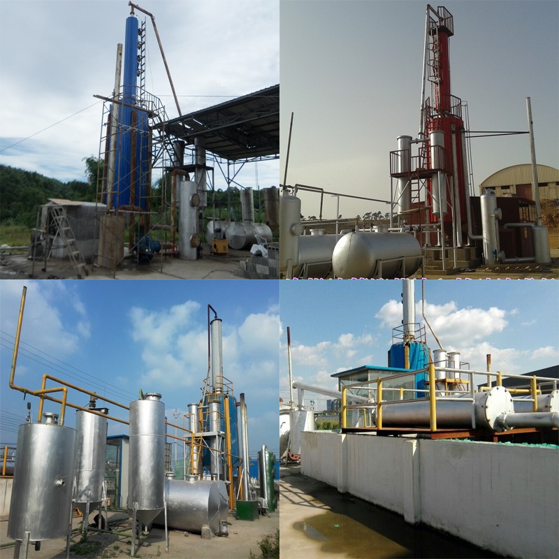 將廢油加入蒸溜反應(yīng)釜內(nèi)加熱,通過先進(jìn)的蒸溜,精溜,閃蒸等工藝,餾出油蒸汽,面后油蒸氣通過冷凝器,分餾出基礎(chǔ)燃料油,經(jīng)調(diào)和后成為合格的燃油。